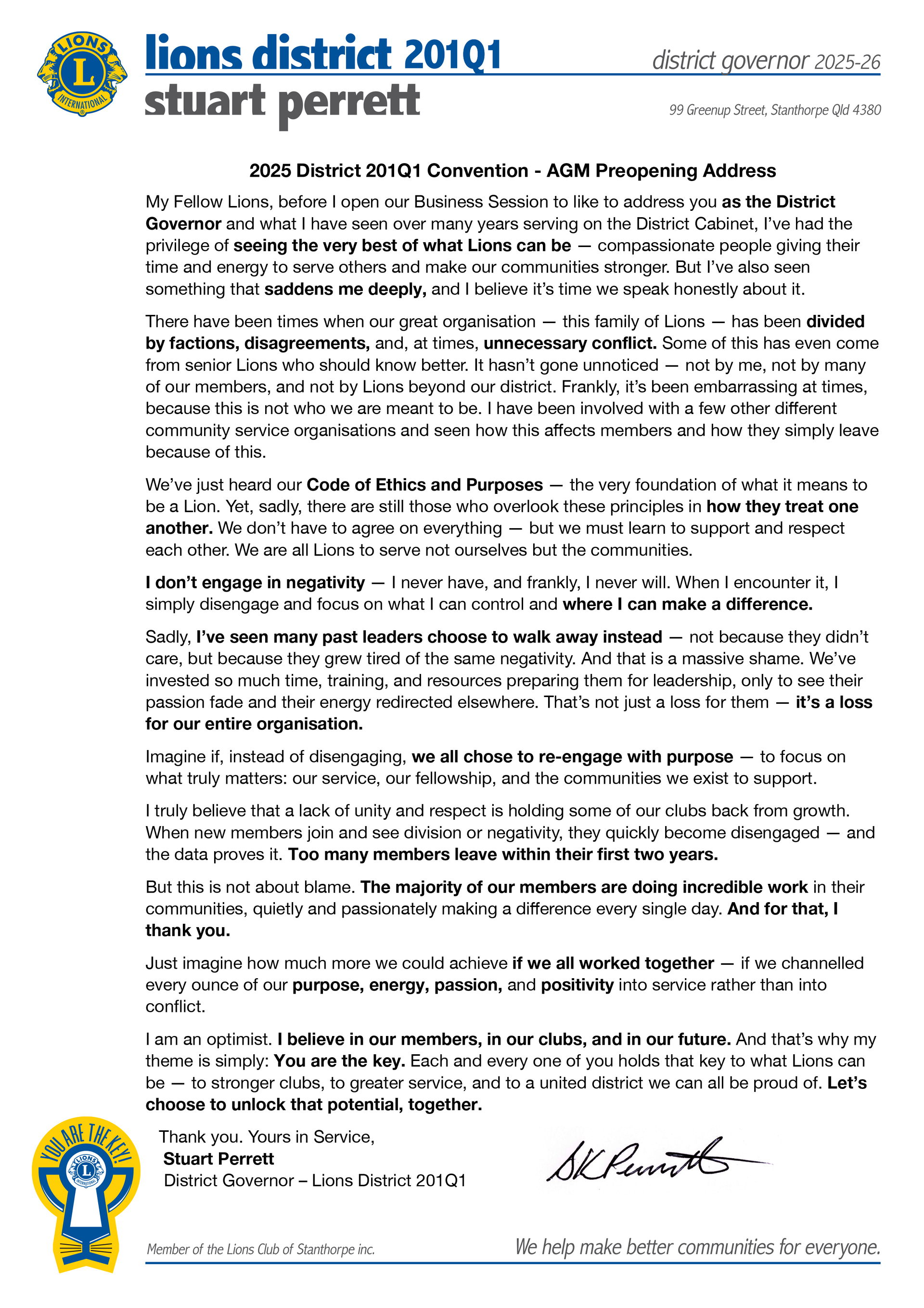 Lions, please submit any NEWS items to the Webmaster@lions201q1.org.au & Cabinet Secretary cabsec@lions201q1.org.au