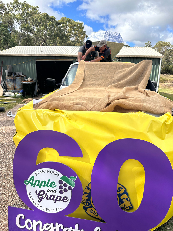 Here in Stanthorpe, the Lions Club of Stanthorpe is once again entering this year’s Stanthorpe Apple and Grape Harvest Festival parade with a massive float supporting our Apple & Grape Personality Quest. The last time we entered — ten years ago — our float was named Grand Champion of the Show and was the standout of the parade. We are looking forward to achieving similar success this year with another fantastic creation.