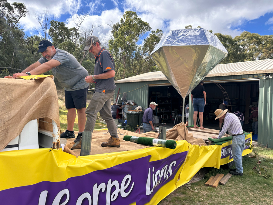 Participating in such a high-profile community event is a brilliant way to generate exposure during Lions Awareness Month. There is nothing quite like hearing the wonderful comments from the crowds as you pass by — it’s a powerful reminder that our communities truly value what Lions do. (See below for photos of the float in progress.)
